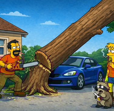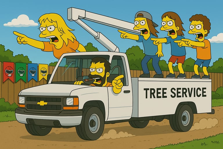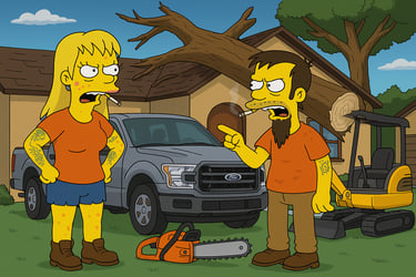 Tree Trash Chronicles is a fictional comedy universe set in Brunswick County, North Carolina, following Treegirl and her crew of “tree trash” cutters as they hustle, scheme, and chaos their way through life. Since 2010, their reputation has been built job-by-job — usually the kind of job that starts with a deposit and ends with somebody saying, “So… are they coming back?”